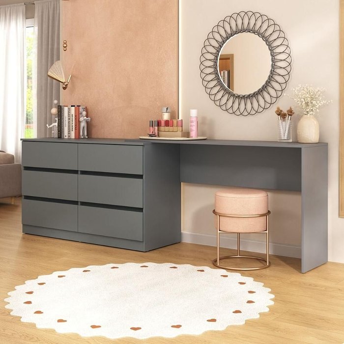 Penteadeira Infantil 231,5cm com 6 Gavetas Flex Multimóveis Mp4403 Grafite Grafite