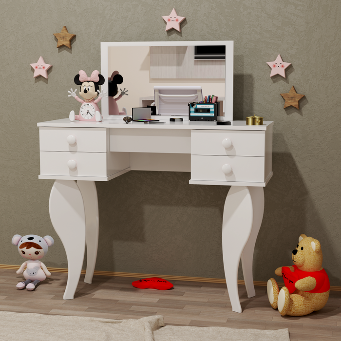 Penteadeira Infantil 4 Gavetas com Espelho:branco