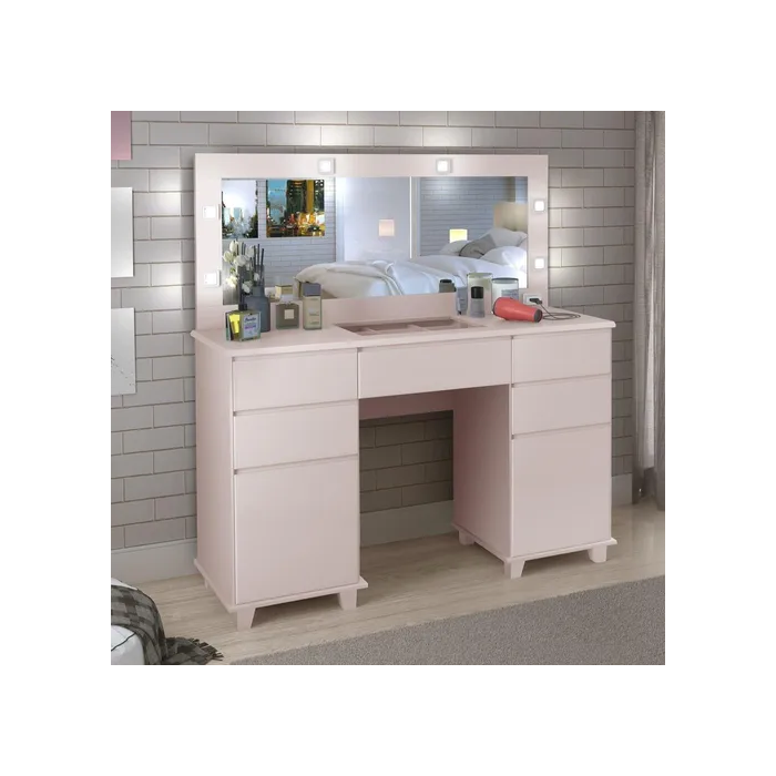 Penteadeira Lx Camarim 5 Gavetas Rose com Espelho Led e Tomada