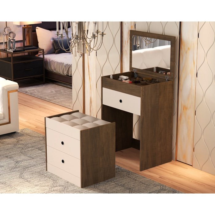 Penteadeira Maquiadora Porta Maquiagem Com Banqueta Offwhite - Marrom