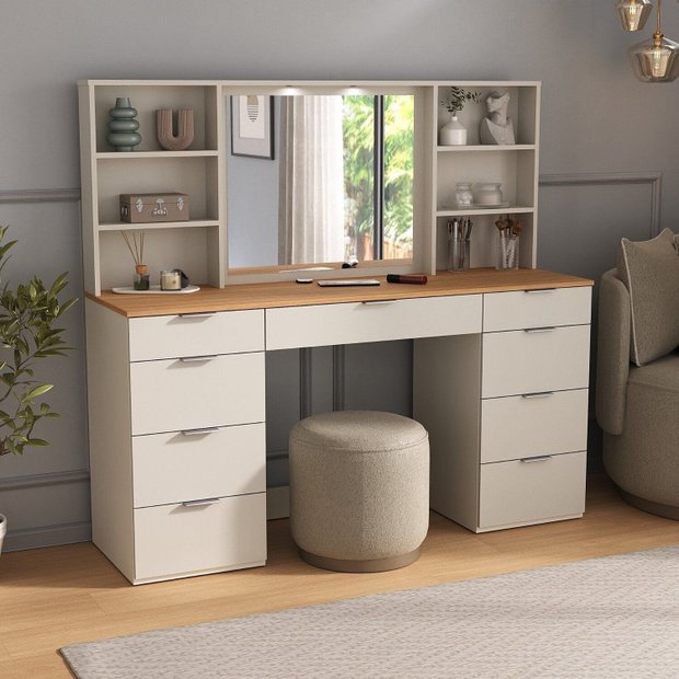 Penteadeira Mdf 9 Gavetas com Espelho e Led Argila/Carvalho Hanover