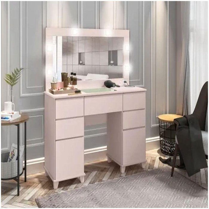 Penteadeira Para Influencer 5 Gavetas Mdf Rosa Acetinado