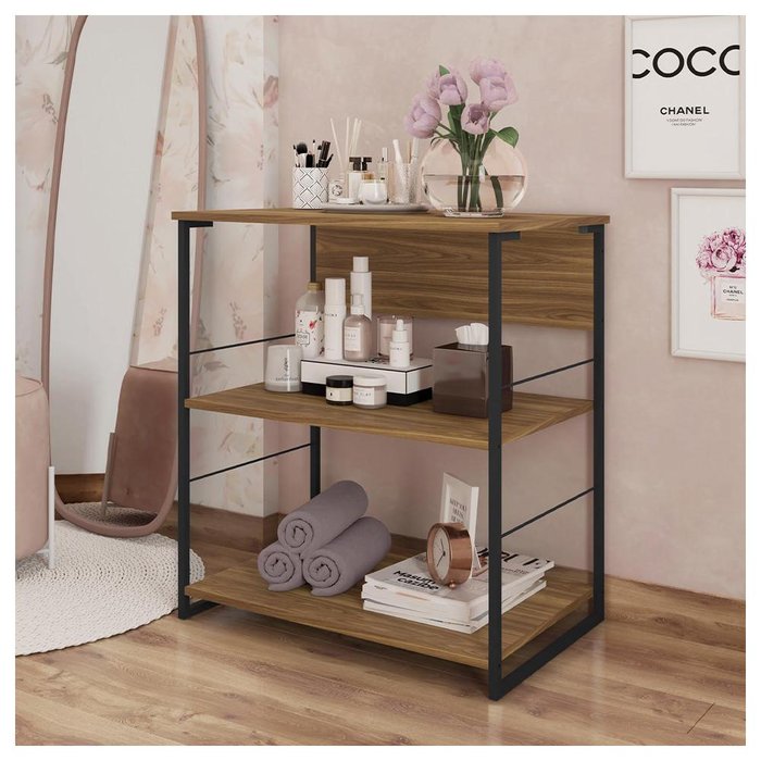 Penteadeira Para Salão Aparador Fabrick Marrom Caemmun Lamina Mel / Preto