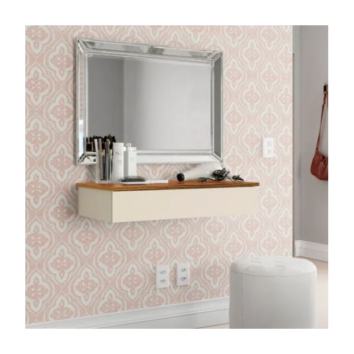 Penteadeira Suspensa Camarim 1 Gaveta - Off White com Freijó - Rpm Móveis