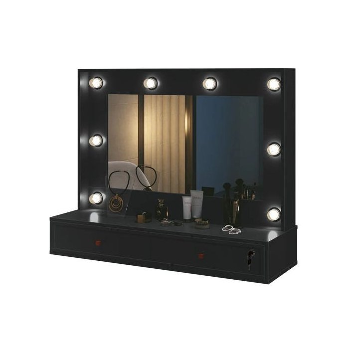 Penteadeira Camarim Amélie e sofisticado e diferente de qualquer outra penteadeira comum, possui gaveta com chave e divisórias para guardar seus objetos pessoais como brincos, maquiagens entre outras coisas. Espelho amplo e soquete para 08 lâmpadas, foi feita para auxilar e a organizar seu espaço quando estiver no seu melhor momento para realizar suas makes lindas!