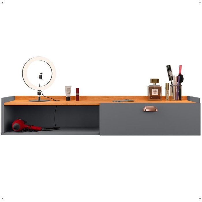 Penteadeira Suspensa Classic 90 Cm Porta Joia Mesa Maquiagem Camarim Quarto Pequeno - Cinza/cinamomo