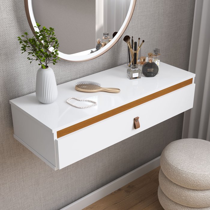 Penteadeira Suspensa com 1 Porta para Maquiagem Branco/ipê