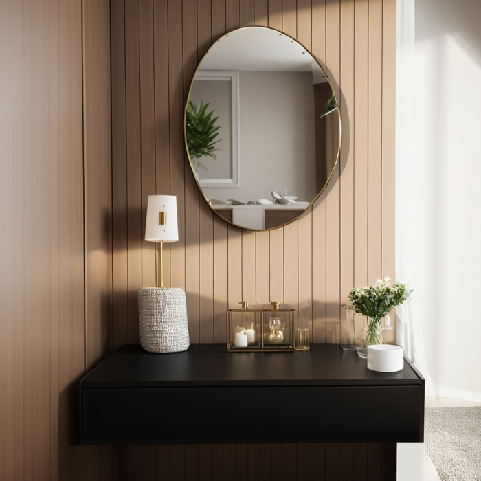 Transforme seu ambiente com esta Penteadeira Suspensa Preta com Gaveta, perfeita para quem busca elegância, praticidade e organização em um só móvel.