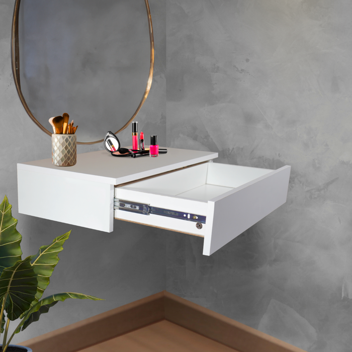 Transforme seu quarto em um espaço organizado e elegante com a Penteadeira Suspensa Com Gaveta Organizadora!