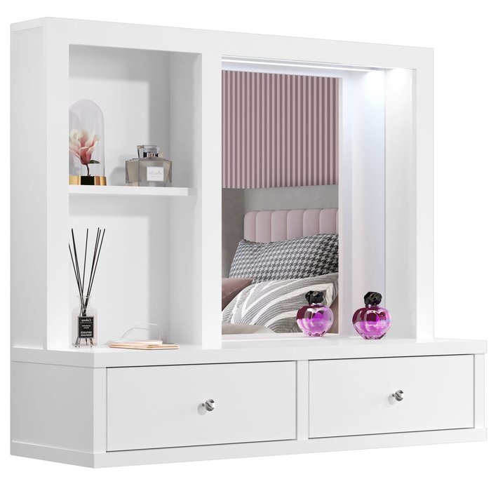 Penteadeira 7707 é ideal para satisfazer sua necessidade, moderna e super funcional. Desfrute muito mais do seu momento especial que é se cuidar, maquiar e organizar suas maquiagens, perfumes ou objetos pessoais. Este modelo está super em alta, móveis neste estilo transformam ambientes, deixando-os muito mais agradáveis e práticos. Possui entrada USB para facilitar a vida enquanto usa a penteadeira e carrega seu aparelho celular.