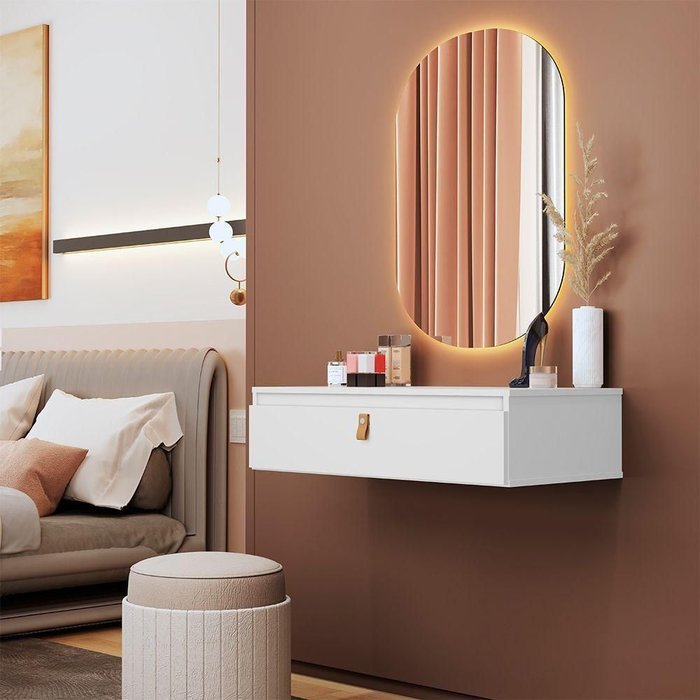 Penteadeira Suspensa Multiuso Console Diana Com Puxador Em Corino Branco A Penteadeira Suspensa Multiuso Console Diana une praticidade e charme em um design compacto. Ideal para otimizar espaços, conta com gaveta com puxador em corino que adiciona um toque sofisticado. Perfeita para ser usada como penteadeira, aparador ou estação de trabalho. Tipo: Penteadeira Multiuso Suspensa Modelo: Diana Cor: Branco DIMENSÕES DO PRODUTO: Altura: 16cm Largura: 66cm Comprimento: 36cm ATENÇÃO AS IMAGENS SÃO MERAMENTE ILUSTRATIVAS E PODEM SOFRER VARIAÇÕES DE COR E PEQUENOS DETALHES DE ACORDO COM O SEU MONITOR, ILUMINAÇÃO DO AMBIENTE E ATÉ MESMO A SUA PERCEPÇÃO VISUAL.Penteadeira Suspensa Multiuso Console Diana com Puxador em Corino Branco