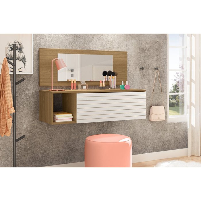 Penteadeira Suspensa P/ Quarto Salão de Beleza Maquiagem C/ Espelho 1 Gaveta 1 Nicho Joy