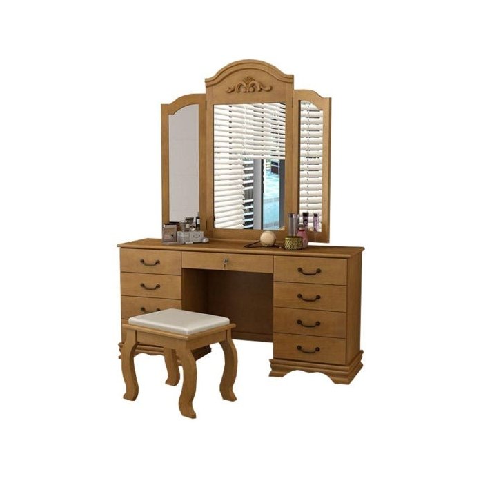 Penteadeira Three-View de Madeira Maciça com Banqueta - Imbuia