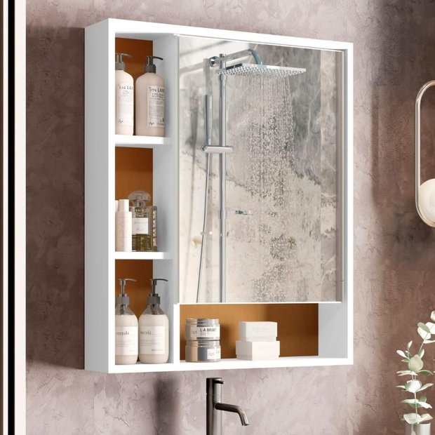 Características: - Material MDP - Cor branco nature - Porta dobradiça - Espelho 3mm