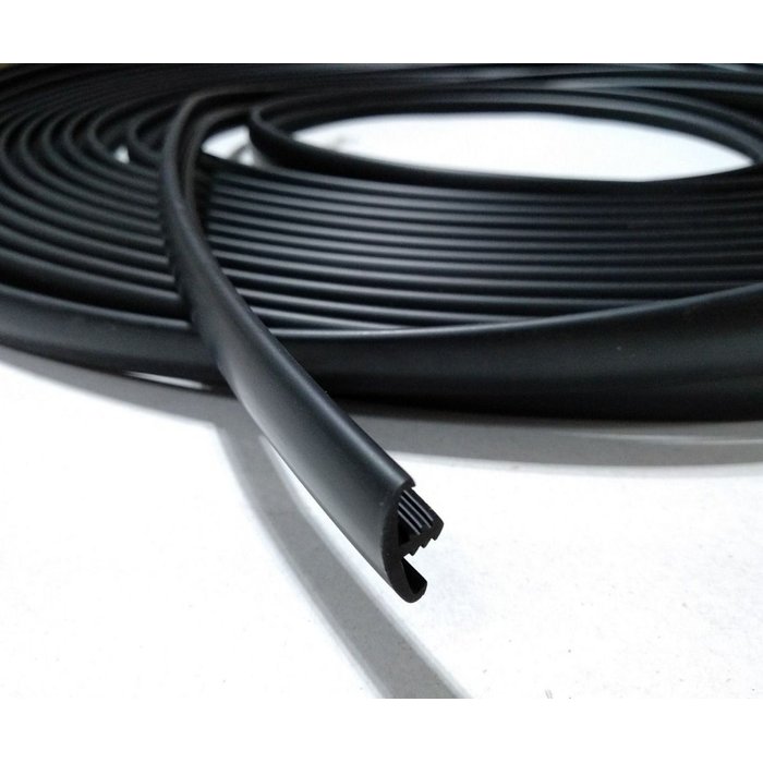 Perfil T 2 abas para acabamento de borda de mesas, gavetas, armarios, etc... Rolo com 100 metros embalado com embalagem plástica transparente.