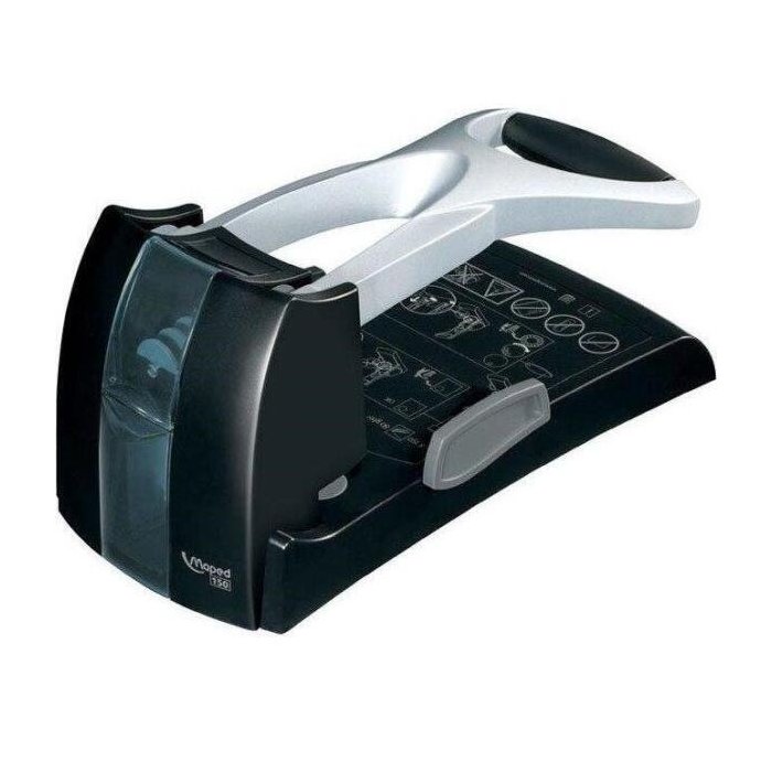 Perfurador De Papel 2 Furos Para 150 Folhas Heavy Duty 150 Expert Maped Perfurador HD150 Maped Ótimo conforto para perfuração: Perfuração sem esforço: tecnologia punções ocas Punho rotativo Soft grip: punho com um toque agradável Sistema de bloqueio de folhas Possibilidade de perfuração formato retrato ou paisagem Compartimento para os pedaços de papel restantes da perfuração Compartimentos para peças sobressalentes Fornecido com 4 discos de sobressalentes Perfura 150 folhas de 80g/m² até 180 folhas de 70g/m² Dimensões: Altura: 190mm, Largura 200mm, Comprimento 390mm