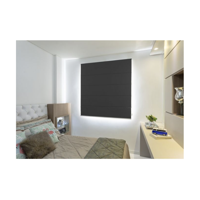 A Persiana Romana Blackout é confeccionada com componentes importados e tecido 100% Poliéster; tela lavável, pode ser limpa com pano úmido; material anti-alérgico.