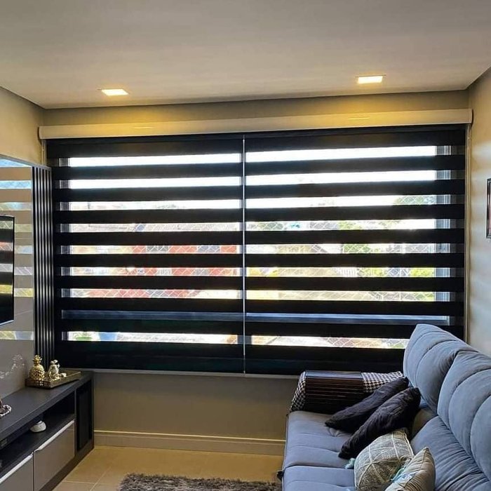 Persiana Double Vision Translúcida Preta - Requinte Linha Stripe 1,12m até 1,29m 1,3m até 1,59m Preta