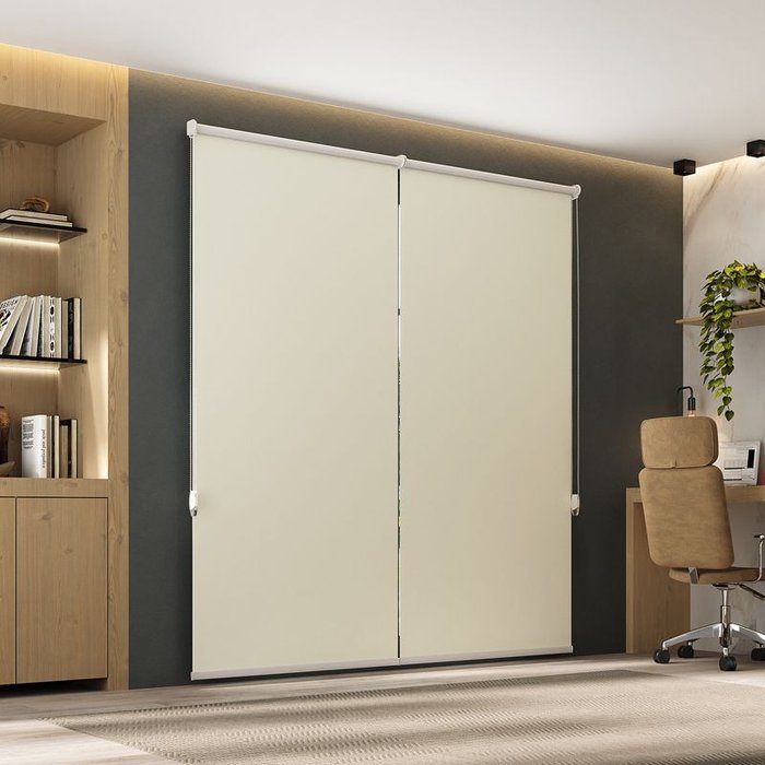 É um painel único, que se recolhe enrolando em um tubo de alumínio, podendo ficar totalmente esticado ou parado na altura que você desejar, de acordo com o nível de claridade que você desejar.