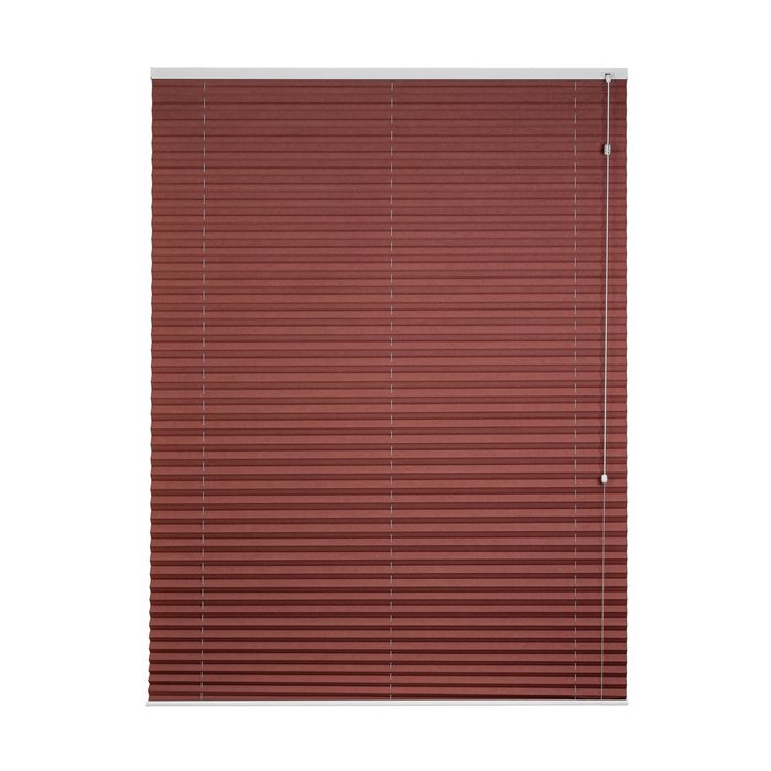 A persiana plissada é composta por um tecido que varia de translúcido. O seu mecanismo de recolhimento é em sanfona, e quando recolhida ocupa pouquíssimo espaço, ideal para quem deseja uma persiana versátil e compacta. A furação no tecido para a passagem dos cordões é aparente, e a mesma também possuí pouca fresta lateral quando instalada.