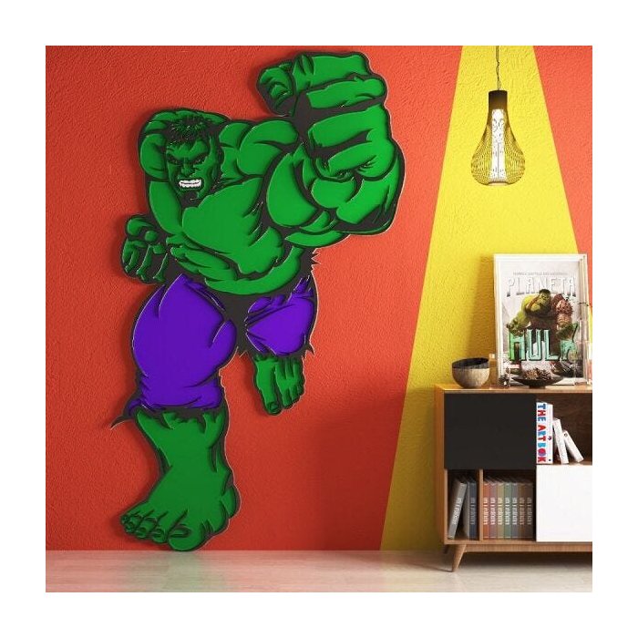 Cole na parede cada parte encaixada com a outra, e ao final terá um painel gigante do Hulk.