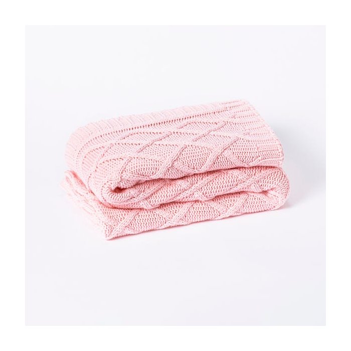 Peseira Cama Solteiro Trico Manta Sofá 150cmx90cm Cod 1064S2:Rosa Claro Rosa Claro