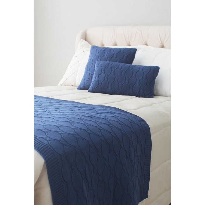 Peseira Tricô Trançada Carlan Azul - Casal 180x70cms -