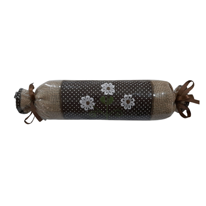 Peso de porta Tecido de jutaAcabamento com viesEnchimento com pedriscoPlastificado