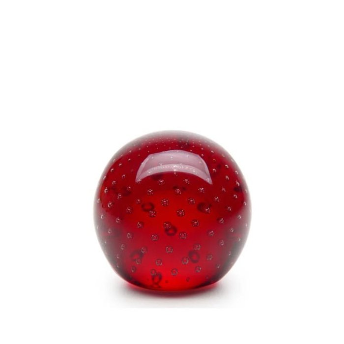 Peso para papel com efeito de bolhas em formato Bola em vidro translúcido Vermelho. Apresenta o efeito de bolhas simétricas que conferem graça e valor à peça. Produzido de forma 100% artesanal é um complemento versátil e de destaque para sua decoração, ideal para ser disposto em conjuntos, como um detalhe ou mesmo como a atração principal da sua composição. Por ser uma peça artística e artesanal produzida com as técnicas trazidas pela família Seguso da Ilha de Murano, em Veneza, podem ocorrer pequenas variações em suas características de desenho e distribuição das cores em relação à imagem.