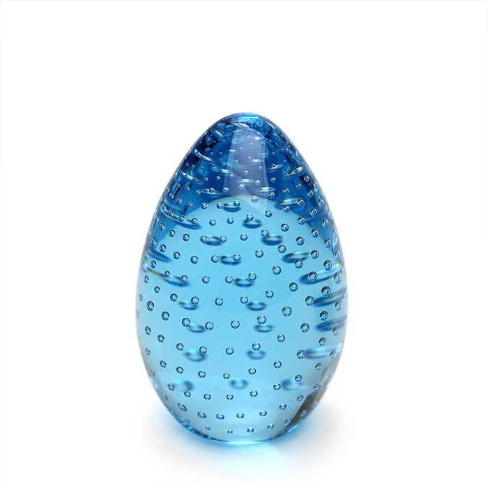 Peso para papel com efeito de bolhas tamanho Grande em formato Oval em vidro Azul Claro. Apresenta o efeito de bolhas simétricas que conferem graça e valor à peça. Produzido de forma 100% artesanal é um complemento versátil e de destaque para sua decoração, ideal para ser disposto em conjuntos, como um detalhe ou mesmo como a atração principal da sua composição. Por ser uma peça artística e artesanal produzida com as técnicas trazidas pela família Seguso da Ilha de Murano, em Veneza, podem ocorrer pequenas variações em suas características de desenho e distribuição das cores em relação à imagem.