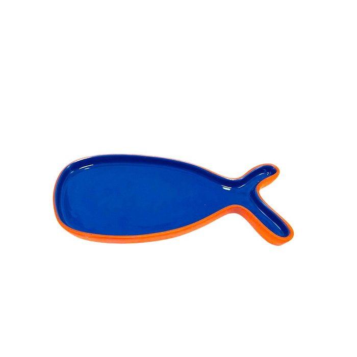 A Petisqueira ceramica mar azul 26x12x2cm Nizy é linda e muito descolada. Feita em cerâmica com pintura azul no seu interior, tem formato de peixe, ideal para uma mesa posta em estilo moderno com tema praia. Seu tamanho é perfeito para você servir seus convidados. Nesta mesma linha você encontra uma versão menor nas nas mesmas tonalidades perfeita para ser combinada.