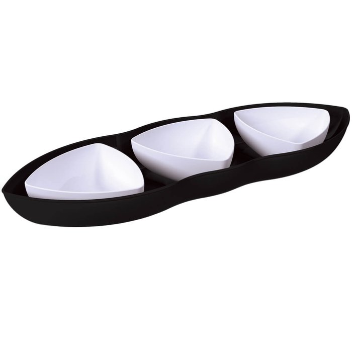 Petisqueira Com 3 Divisórias Removíveis Prato Barca Para Petiscos De Mesa Preto