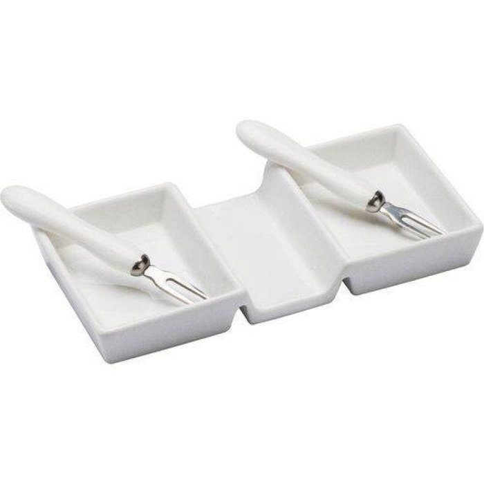 Petisqueira Lyon Branco com 2 Garfinhos Em Porcelana - Bon Gourmet - 19 Cm