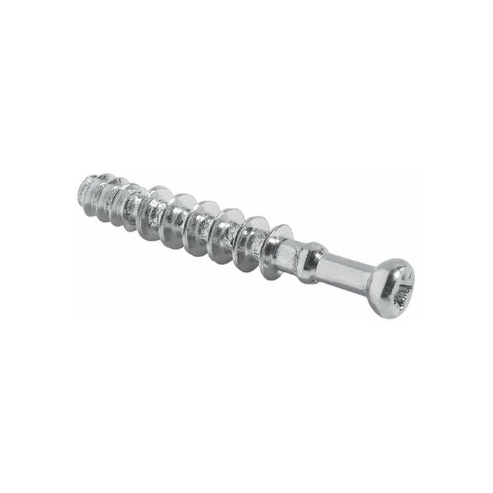 Parafuso de aço para dispositivo de montagem MINIFIX / RASTEX no acabamento zincado branco com anéis de reforço. Parafuso com 31 mm de comprimento total e rosca soberba de 8mm de altura para aplicação diretamente na madeira. Produto original BIGFER de alta resistência e precisão para montagem para uso no padrão de furação de 24 mm de distância da borda da chapa. Kit com 200 unidades para ser utilizados em conjunto com tambores padrão MINIFIX / RASTEX de todas as alturas e espessuras de chapas disponíveis. Os tambores são vendidos separadamente.