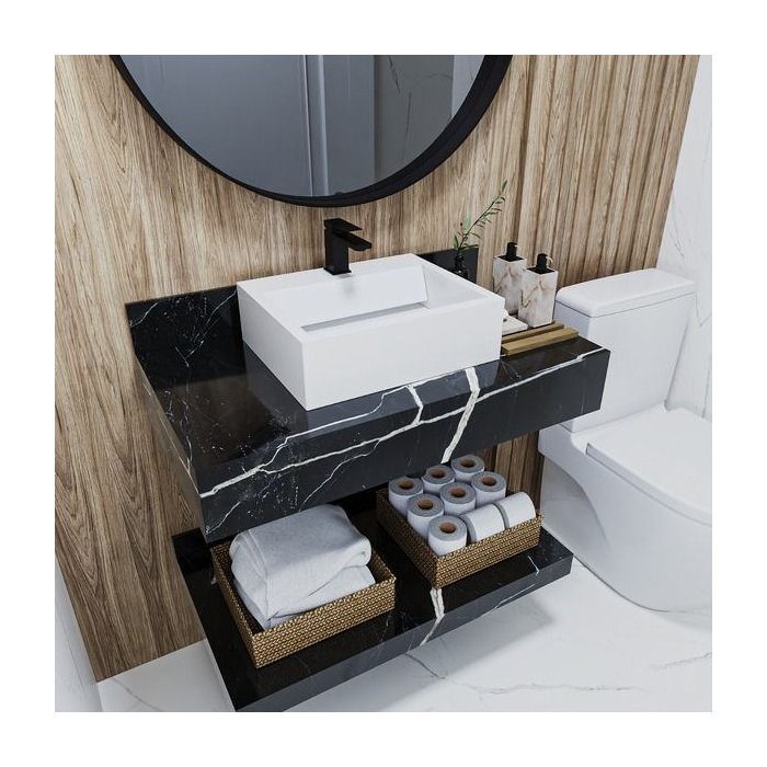 Pia Banheiro Porcelanato 80cm sem Cuba + Prateleira Preto
