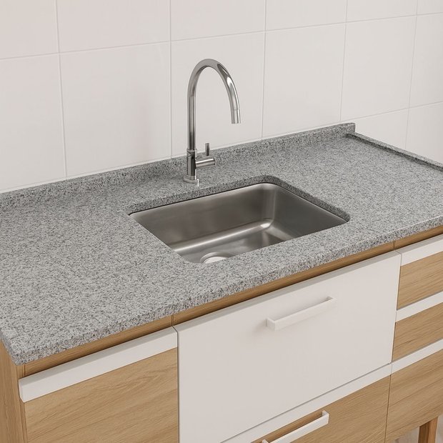 Pia de Cozinha em Granito Corumbá 1,50m com Cuba Inox e Acabamento Duplo