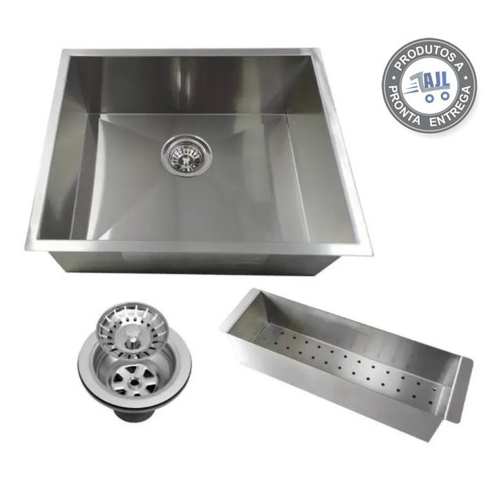 Pia Cuba De Inox Quadrada 50X40 Cozinha Multiuso C/ Escorredor AJL STORE