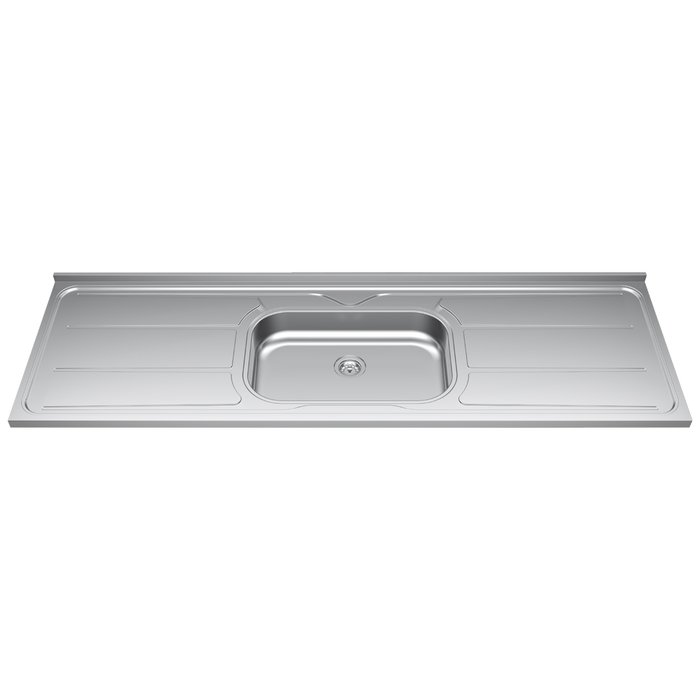 Ela é produzida em aço inox que conta com muitos benefícios, entre eles: é resistente a impactos, choques térmicos, corrosão, seu material não absorve odores e a manutenção é muito fácil! Conta com cuba central, escorredor duplo e forro em concreto garantindo qualidade e durabilidade ao produto.
