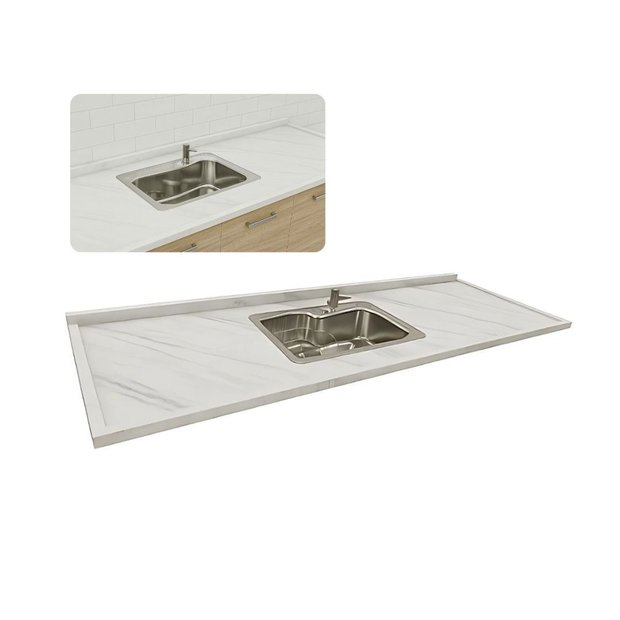 Pia de Cozinha em Mármore Branco 2,00 m com Cuba Gourmet Sobreposta e Acabamento Duplo