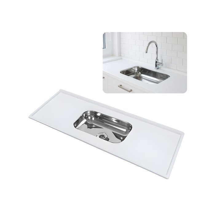 Pia de Cozinha Mármore Sintético Bege 1,20m com Cuba Inox N1:branco