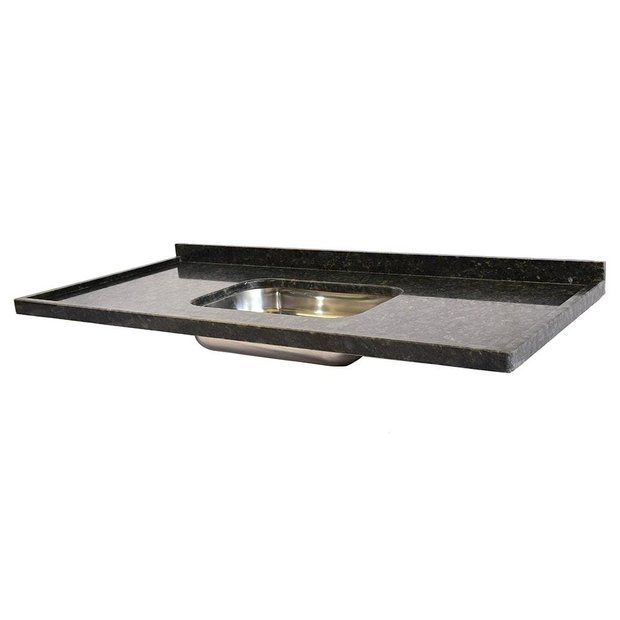 Produzida em granito na cor verde ubatuba com acabamento diferenciado em alto brilho, inclui cuba de aço inox colada e grampeada, garantindo maior resistência à impactos, temperaturas elevadas e desgastes por tempo de uso, e prolongando a vida útil da sua pia.