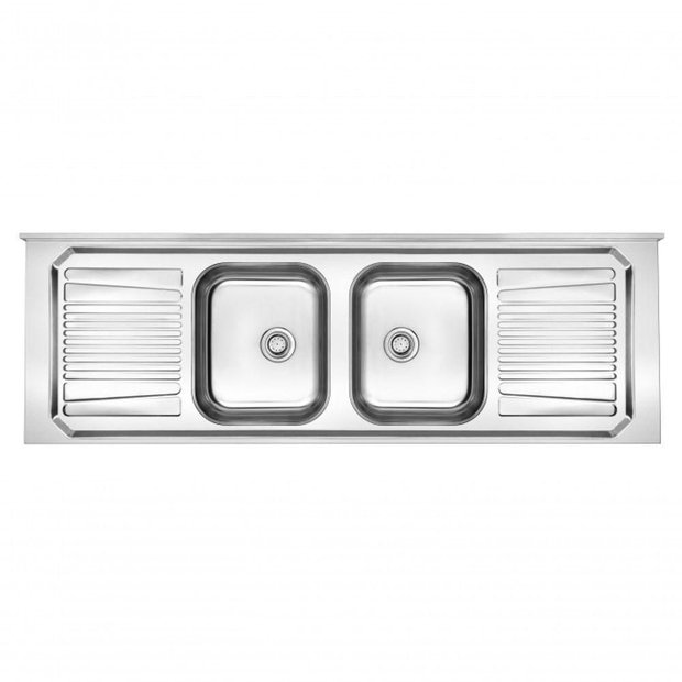 Pia De Inox Com Cuba Dupla 1,80 X 0,53 Escorredor