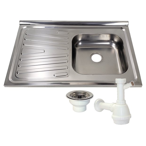Pia de cozinha de aço inox, para gabinete, medindo 80x52Cm, com cuba simples à direita, válvula e sifão