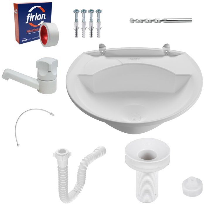 Pia Lavatório 4l + Torneira Branca + Sifão Sanfonado + Engate Flexível + Veda Rosca + Broca Branca