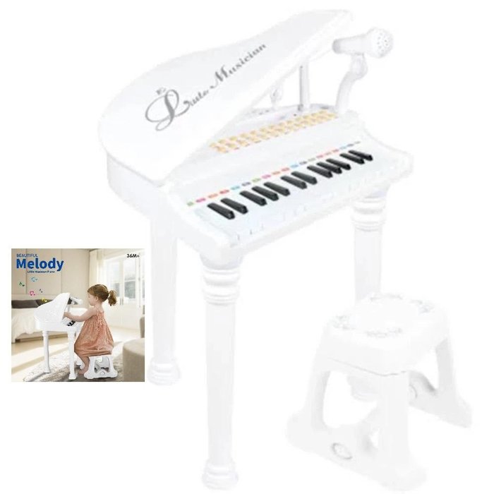 PIANO INFANTIL COM MICROFONE GRAVADOR MP3 BANQUETA BANQUINHO CLASSICO LUXO PROFISSIONAL BRANCO branco