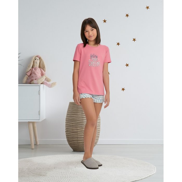 Pijama Inf/Juvenil Feminino Microfibra R Rosa