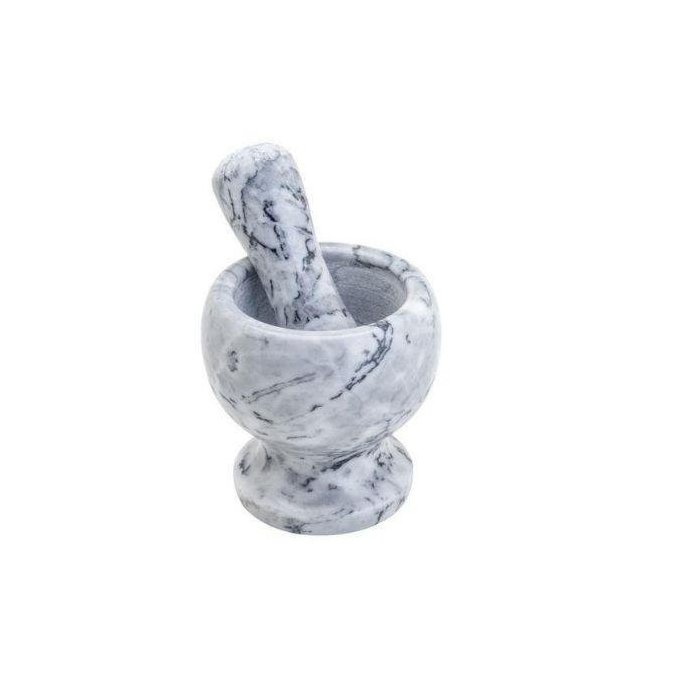 Clássico Pilão em mármore para a preparação de diversos temperos. A base é robusta e pesada, polida por fora mas não por dentro o que aumenta a resistência da superfície triturável. Com esse pilão fica fácil preparar vários temperos e pastos com: alho, amêndoas, nozes, folhas, etc. Simples de usar, basta colocar o tempero de sua preferência no fundo do pilão, socar com o socador e pronto. Combine temperos como pimentas e ervas e dê um toque de chef a sua comida. Ficha técnica - Profundidade: 8 - Material: Mármore - Diâmetro: 12 - Material do socador: Mármore - Comprimento do socador: 13