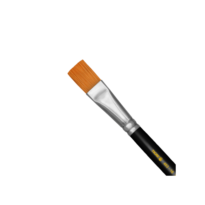 O Pincel Chato da marca Tigre traz pra você precisão e qualidade para a sua pintura. Com filamento de cerda sintética dourado acetinado, super flexível e sedoso, com cabo curto de madeira e virola metálica. Indicado para pinceladas ilustrativas e precisas na pintura de madeira, porcelana, cerâmica, vidro e aquarela.