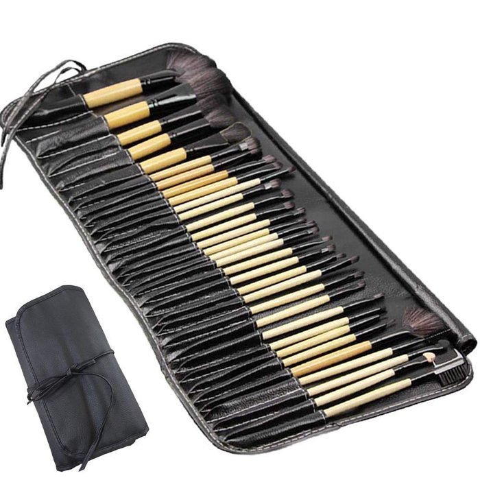 Pincel Maquiagem Kit 24pçs Estojo Dobravel Portatil Makeup Preto