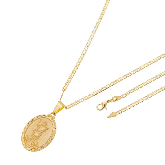 Pingente Medalha Santo Expedito com Corrente Italiana Fina Folheada a Ouro 18k